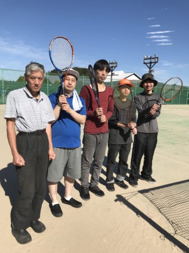 5名の利用者さん参加、職員1名で、竜王町にあるドラゴンハットのテニスコートで2時間練習、ゲームを楽しみました。ルミエルテニス部!定期的に汗を流しています。